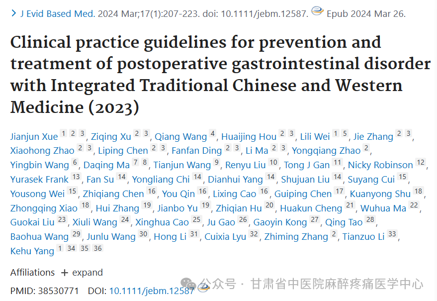 在2024中国麻醉周,由中国中西医结合学会麻醉专业委员会和围术期专业委员会牵头,甘肃省中医院麻醉疼痛医学中心薛建军主任团队承担制订的中国中西医结合围术期医学领域首部国际临床实践指南在JEBM期刊网络首发!